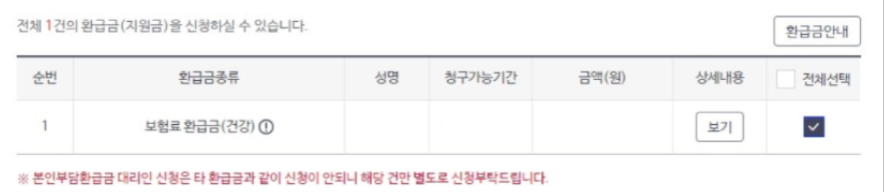 환급금 상세내용 확인