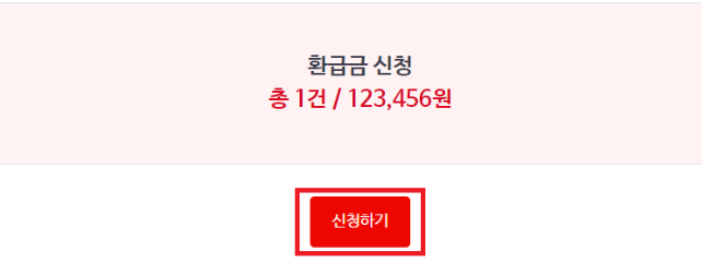 5. 환급금 건수와 금액을 확인하고 신청하기 버튼을 클릭합니다.