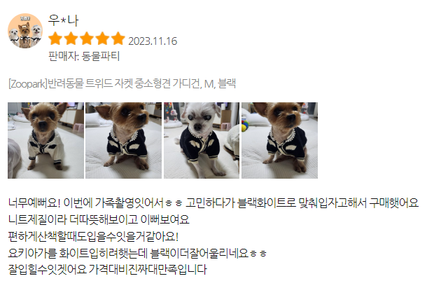 제가 가끔 지인의 강아지를 맡아서 돌봐주곤 하는데요, 이 옷을 보니 하나 선물해 줘야 겠단 생각이 드네요.