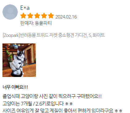 두 마리 키우시는 분 들은 각각 하나씩 사서 입히기도 하시더라구요.